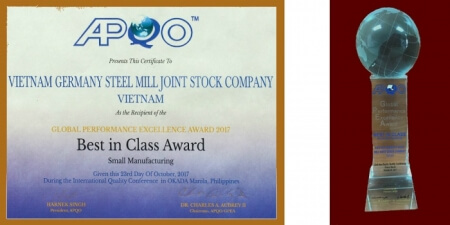 Ghi nhận những thành quả cũng như nhưng đóng góp tích cực mà Thép Việt Đức đã đạt được trong những năm qua. Nhà nước, Cộng đồng các doanh nghiệp và xã hội đã dành cho Thép Việt Đức nhiều phần thưởng xứng đáng như: Huân chương Lao động Hạng Nhì; Huân chương lao động hạng Ba; Cờ thi đua Chính Phủ; Bằng khen của Thủ tướng Chính Phủ; Bằng khen của Bộ Tài Chính; Bằng khen của Bộ trưởng Bộ Khoa học Công nghệ; Bằng khen của UBND tỉnh Vĩnh Phúc; Giải vàng chất lượng Quốc Gia; Giải thưởng Thương hiệu mạnh Việt nam; Cúp Top 10 Danh hiệu 100 thương hiệu việt bền vững; Cúp Vàng ISO…..Và nhiều giải thưởng cao quý khác.